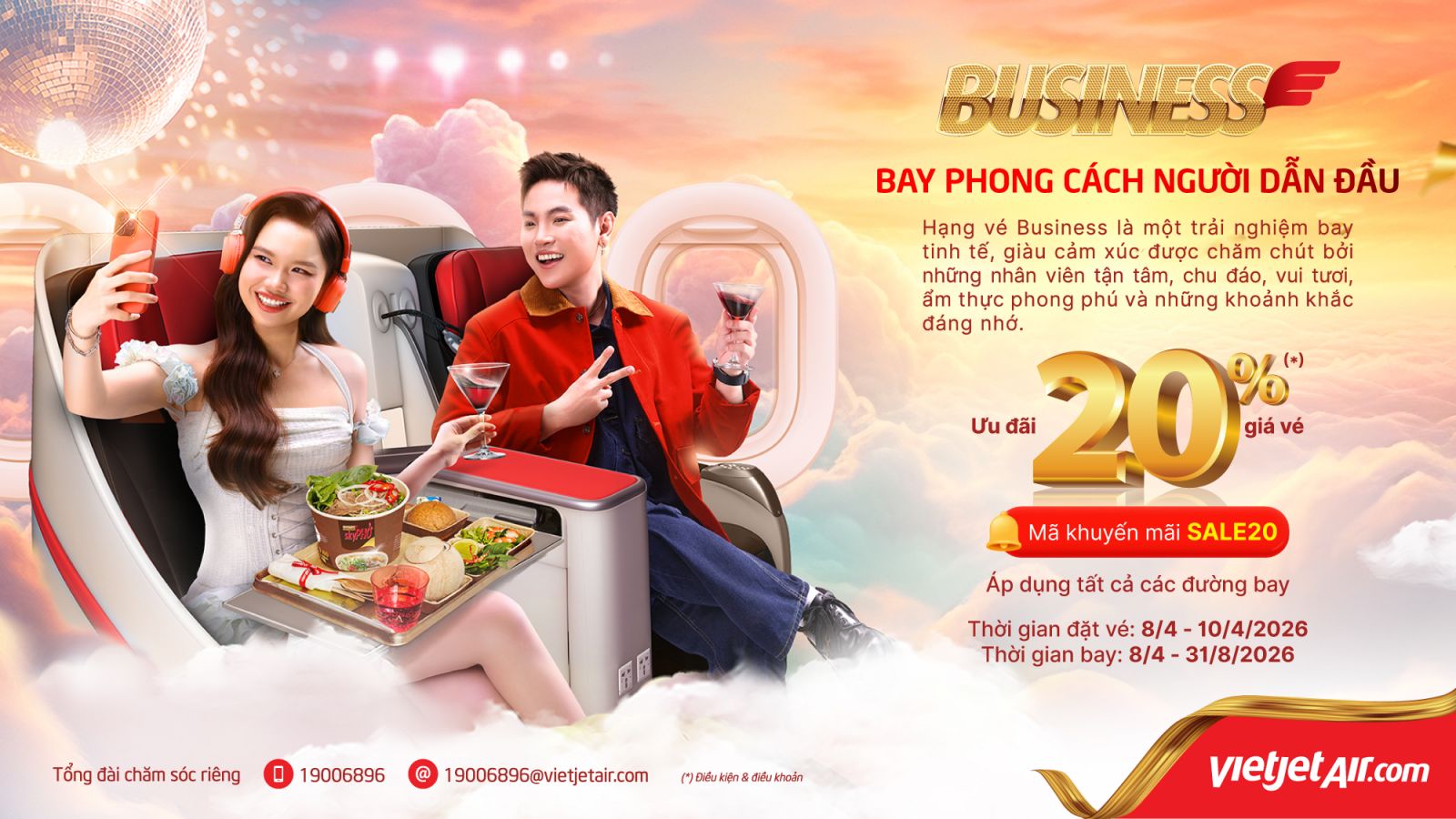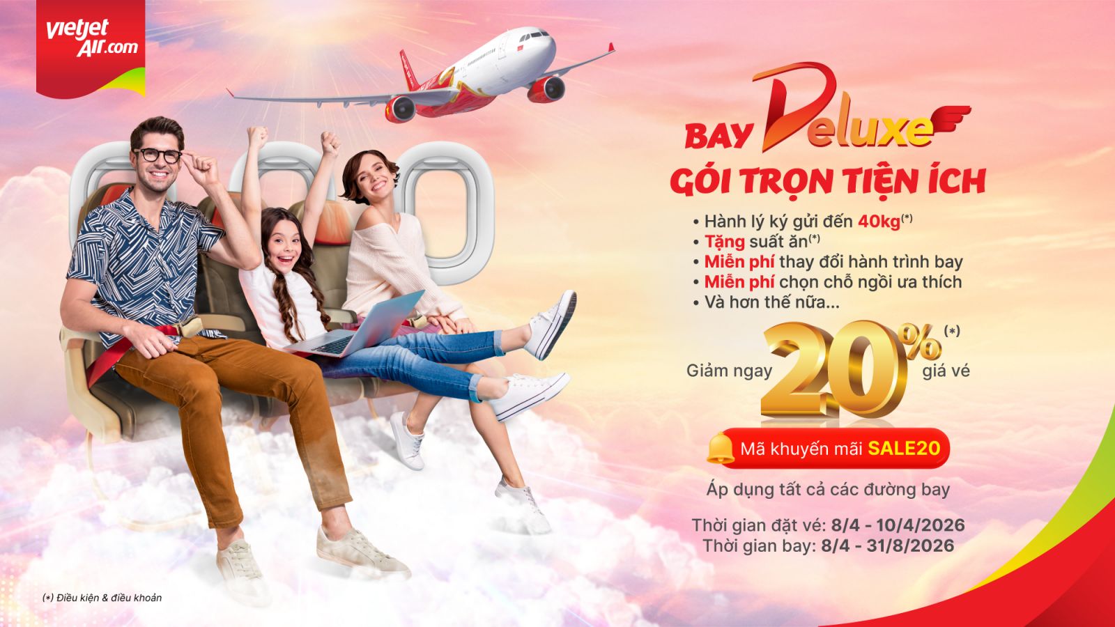 GIẢM THẬT NHIỀU, CHIỀU LÒNG KHÁCH YÊU: VIETJET KHUYẾN MÃI 20% HẠNG VÉ DELUXE và SKYBOSS - BUSINESS